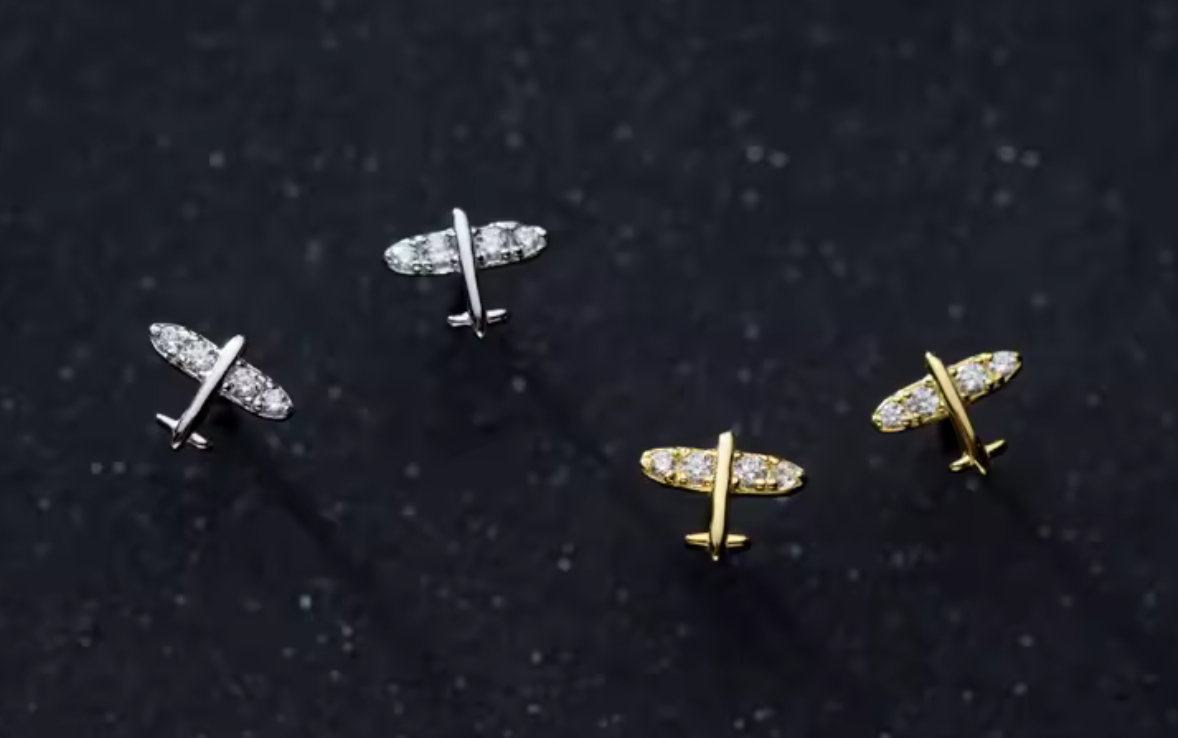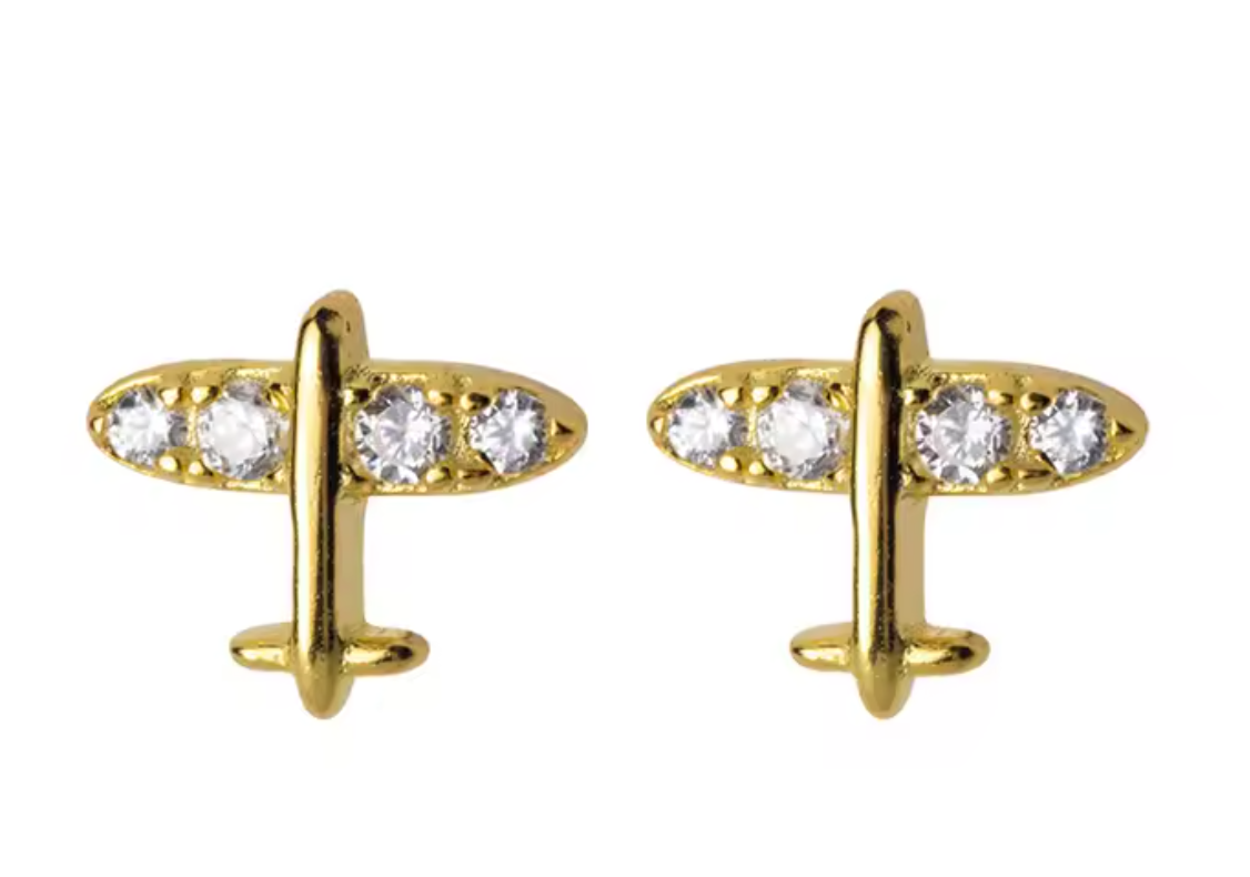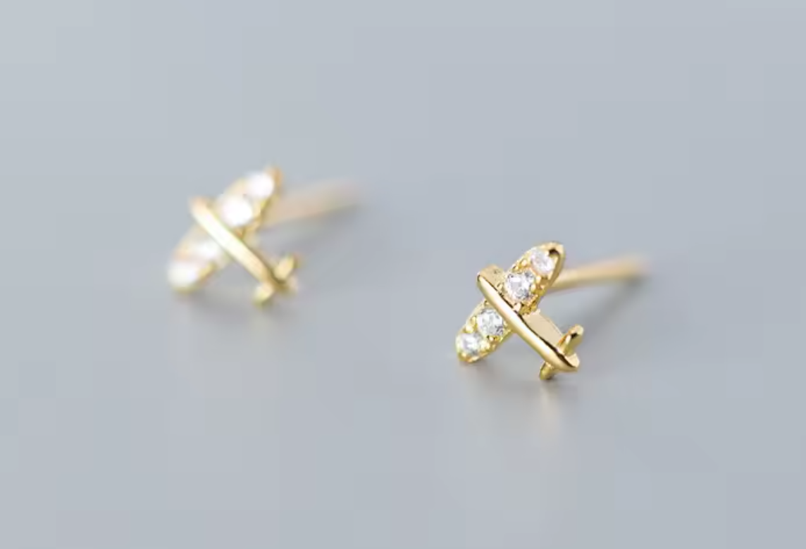 Para los amantes de la aventura y los viajes, estos studs con diseño de avión son el detalle perfecto para llevar tu espíritu viajero siempre contigo.